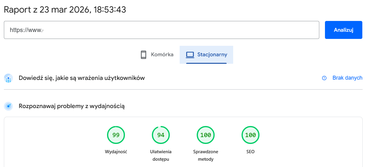 Na potrzeby testów (i własnej ciekawości) zmigrowałem dwa mniejsze projekty, korzystając oczywiście ze wsparcia technicznego, żeby sprawdzić również ten aspekt. Support odpowiada bardzo szybko, co zdecydowanie zasługuje na plus. Panel to dobrze wszystkim znany DirectAdmin, wyposażony w estetyczną skórkę i intuicyjnie uporządkowane opcje. Strona oparta na WordPressie z WooCommerce (wykorzystywanym jedynie do płatności online) osiąga obecnie 99% wydajności w GSC, podczas gdy na poprzednim hostingu wynik wynosił zawsze około 94%. Nie mam pewności, czy to przypadek, ale ze swojej strony nie wprowadzałem żadnych zmian. Aby powiedzieć coś więcej musi minąć trochę czasu. No tutaj średnio wypadli, fakt. Przedłużenie na tle podobnych firm hostingowych nie jest też wygórowane moim zdaniem. Da się znaleźć taniej, np. Hostline, Hostido ale drogo nie jest.