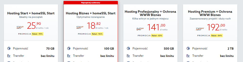 Hmm. Ja widzę inne ceny. Start/Biznes 520 zł netto, Profesjonalny 847 zł